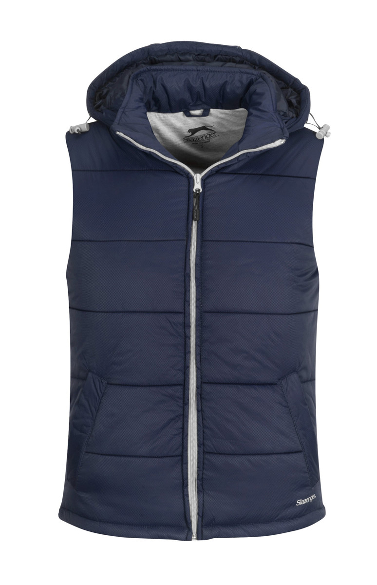 A stylish Slazenger hooded body warmer, available in mens and ladies.